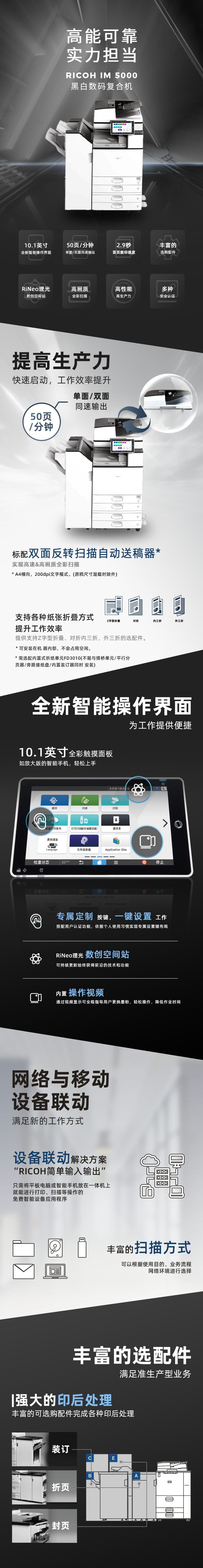 - 商品名稱:理光(Ricoh)IM 5000 A3黑白激光數(shù)碼復(fù)合機(jī) 標(biāo)配含雙面輸稿器+四紙盒+1000頁(yè)小冊(cè)子裝訂