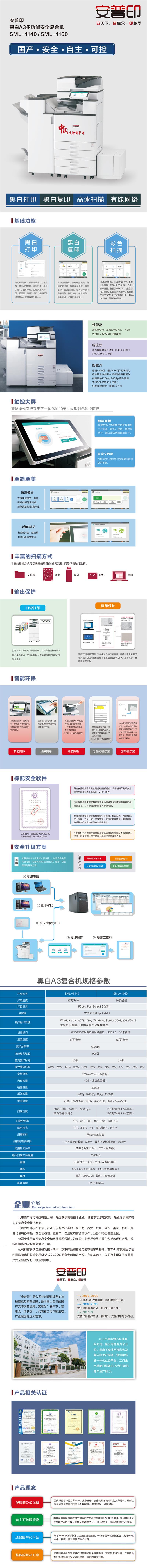 - 商品名稱:安普?。⊿ecuPrint)SML-1160 A3黑白多功能數(shù)碼國(guó)產(chǎn)安全復(fù)合機(jī) 主機(jī)+雙面輸稿器+雙層紙盒+原裝工作柜