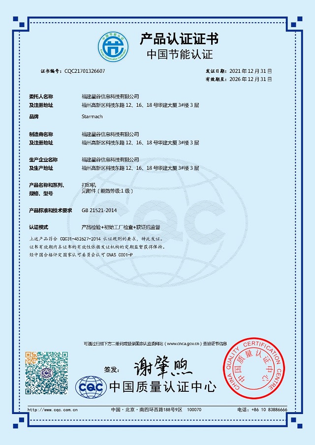 • 節(jié)能產(chǎn)品證書編號:CQC21701326607