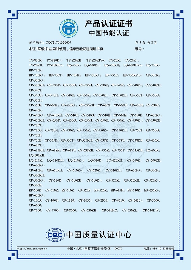 • 節(jié)能產(chǎn)品證書編號(hào):CQC21701326607