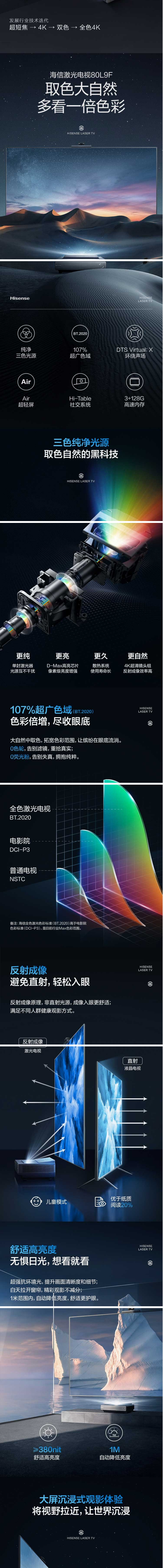 海信激光電視 80英寸 三色光源 AI攝像頭 4KHDR 3+128GB內(nèi)存 護(hù)眼巨幕 80L9F