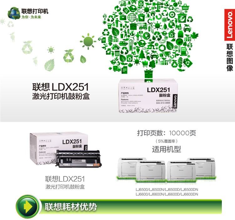 聯(lián)想(Lenovo)LDX251原裝硒鼓(10000頁;A4紙5%覆蓋率)