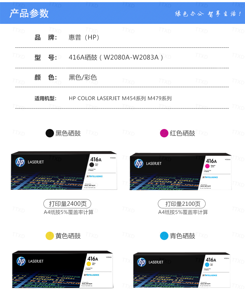 惠普(HP)w2040a 原裝硒鼓 416A青色(w2041A)約2100頁