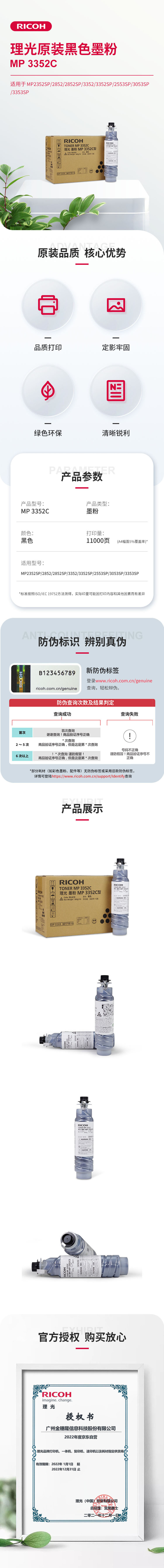 - 商品名稱:理光 墨粉MP3352C-1支(11,000頁)適用于MP2352SP/2852/2852SP/3352/3352SP MP2553SP/3053SP/3353SP