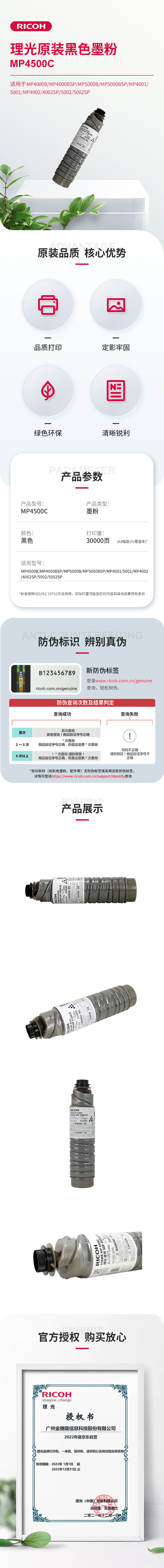 - 商品名稱:理光 碳粉MP4500C型 (4支/箱) - 1支(30,000頁(yè))