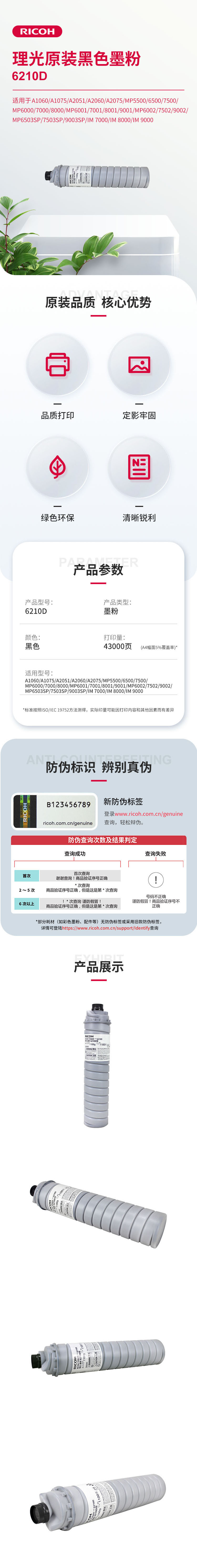 • 商品名稱:理光 碳粉6210D型-1支 (43,000頁)