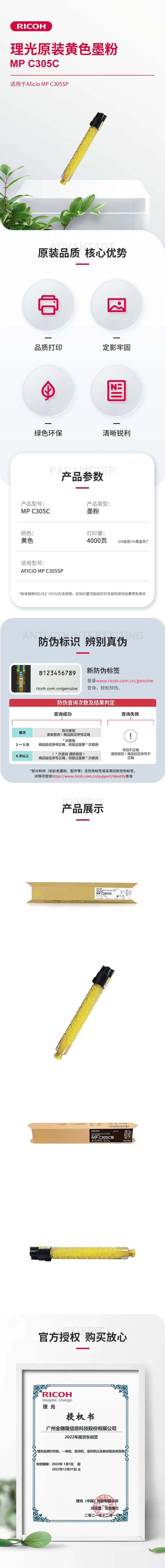 • 商品名稱:理光 黃色碳粉盒MP C305C型 - 1支(4,000頁)