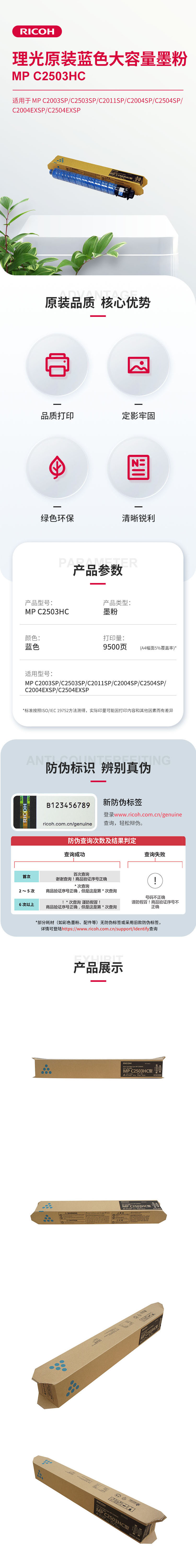 • 商品名稱:理光 藍(lán)色墨粉盒 MP C2503HC型 - 1支(9,500頁(yè))