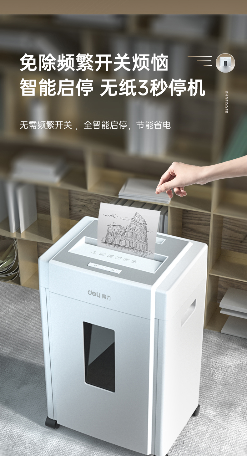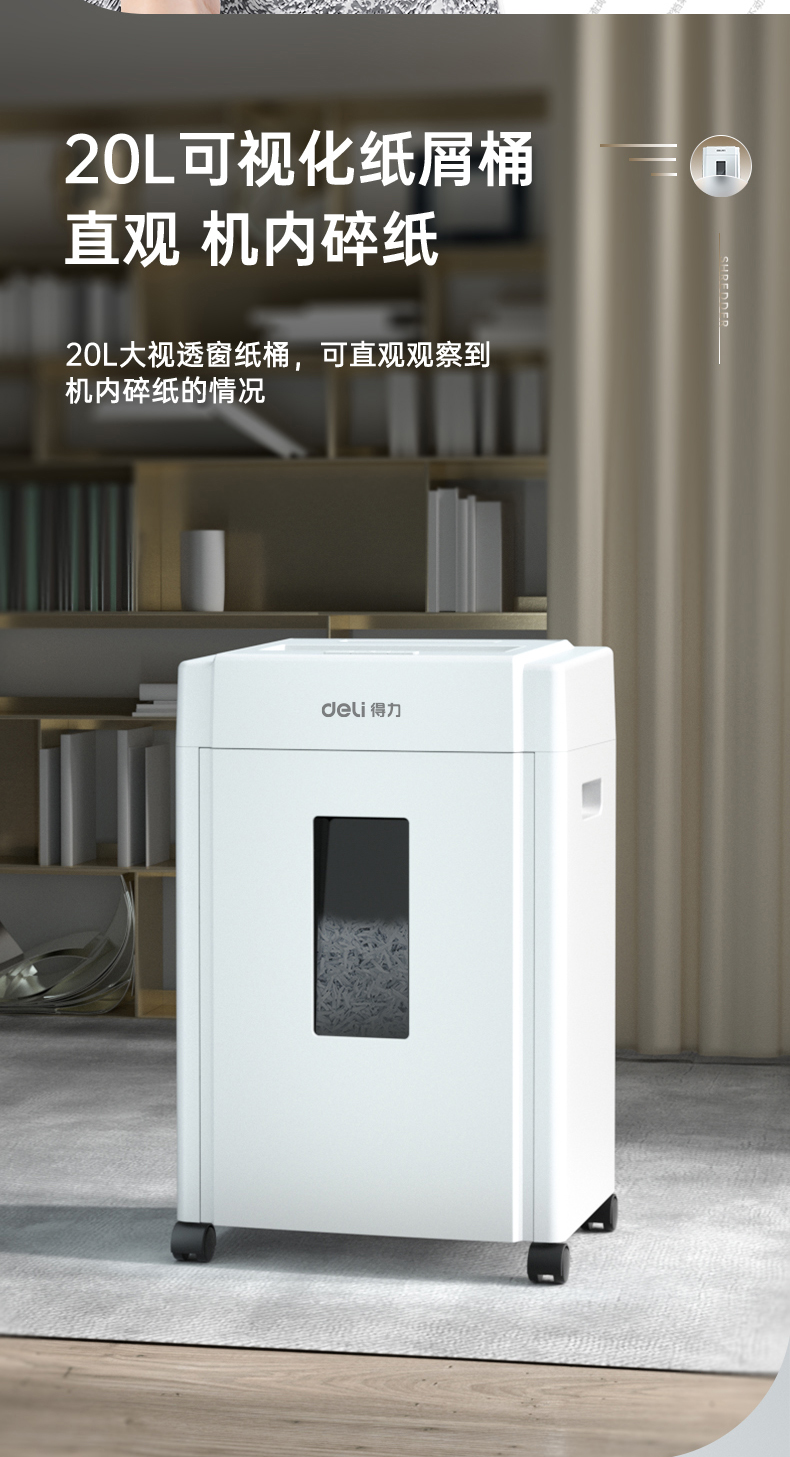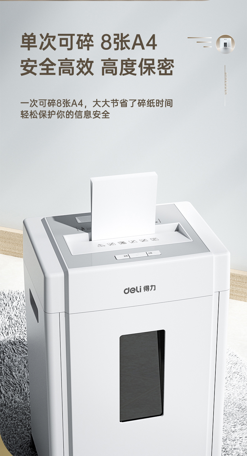得力(deli) 5級保密辦公商用碎紙機(jī)(單次8張 20L 持續(xù)10分鐘 可碎卡碎光盤) 33040