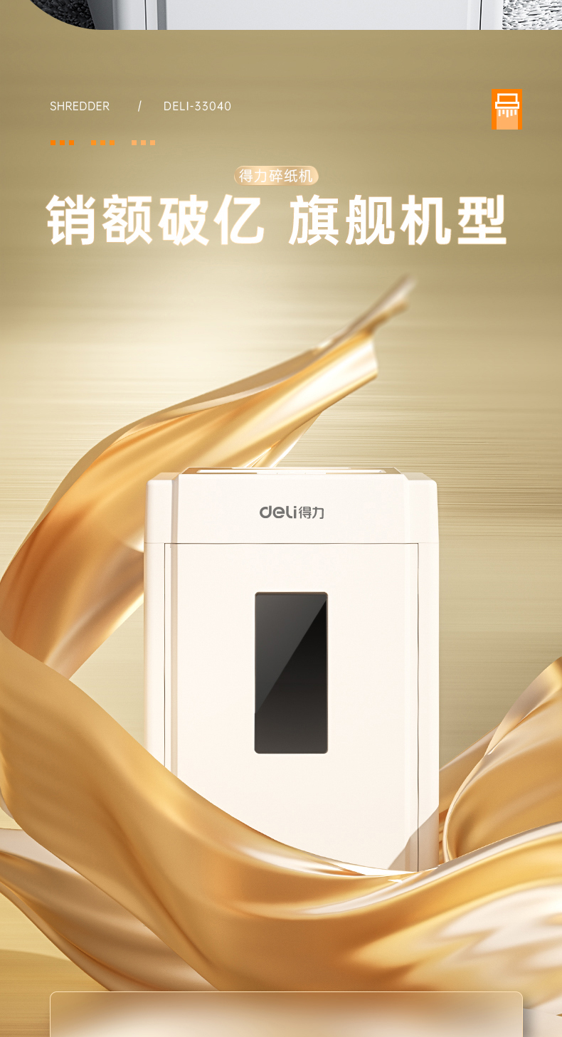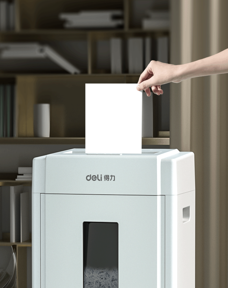 • 商品名稱:得力(deli) 5級保密辦公商用碎紙機(jī)(單次8張 20L 持續(xù)10分鐘 可碎卡碎光盤) 33040