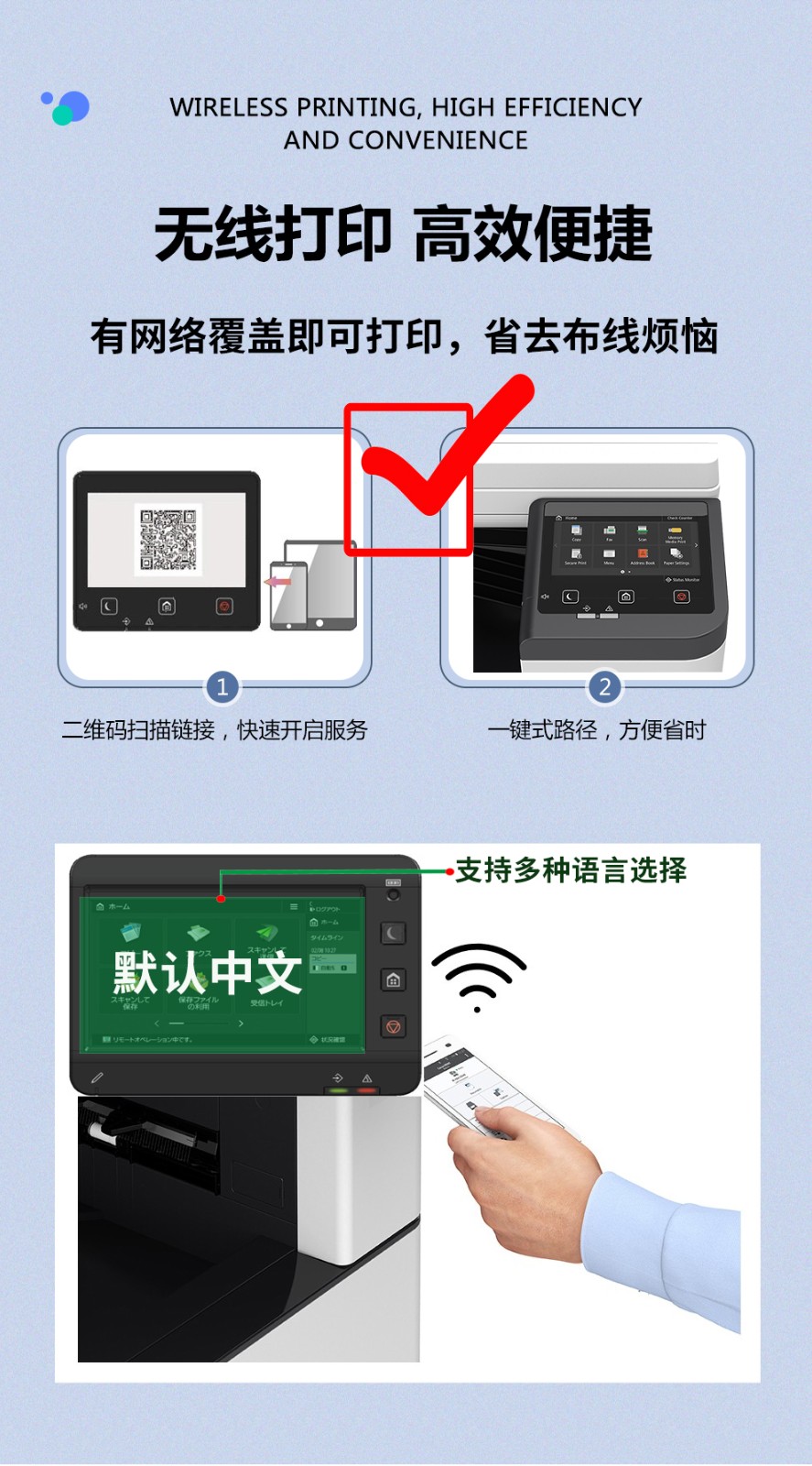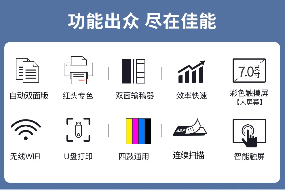 • 涵蓋網(wǎng)絡(luò)功能:復(fù)印/打印/掃描