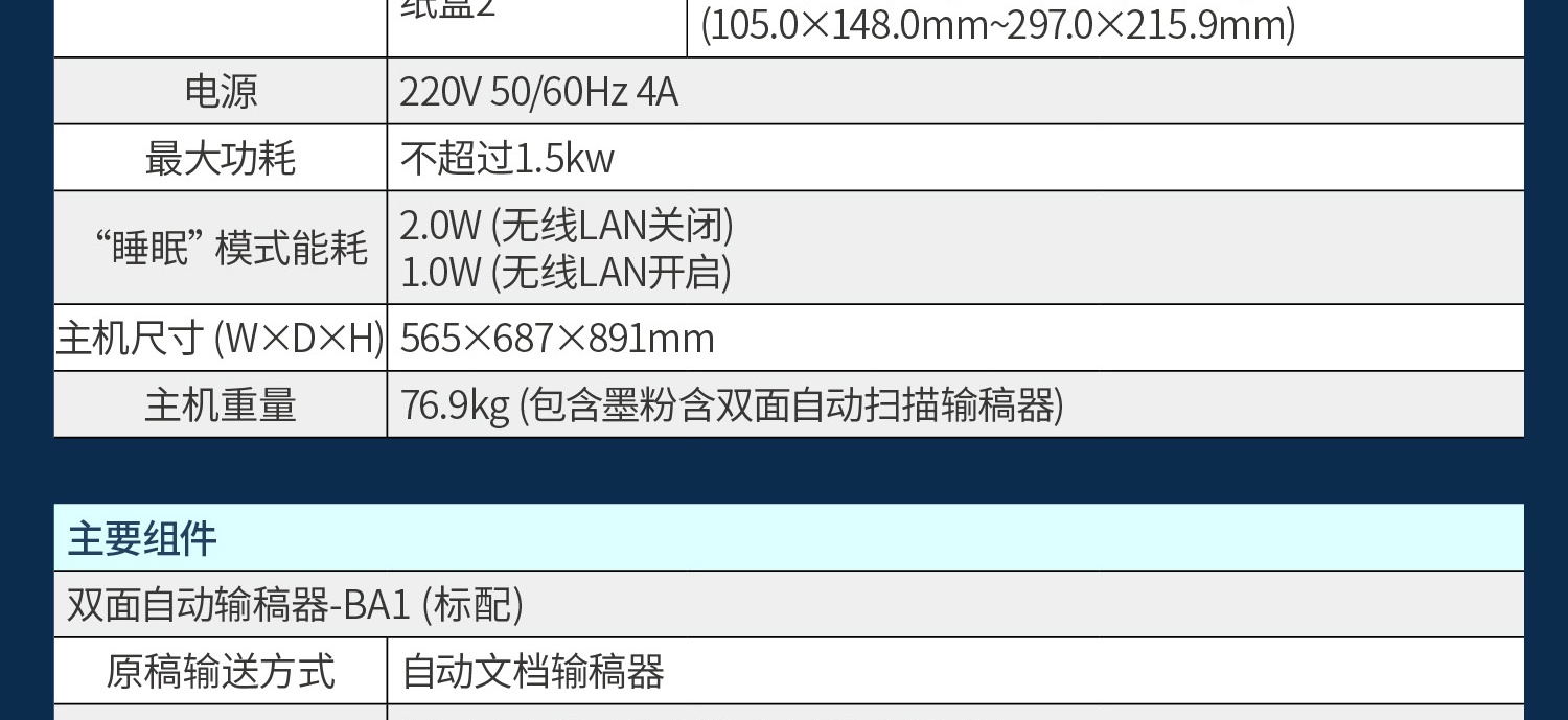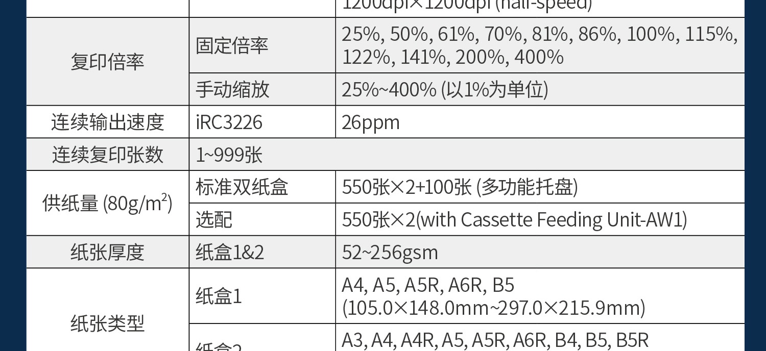• A4復(fù)印速度(黑白):26頁(yè)/分鐘