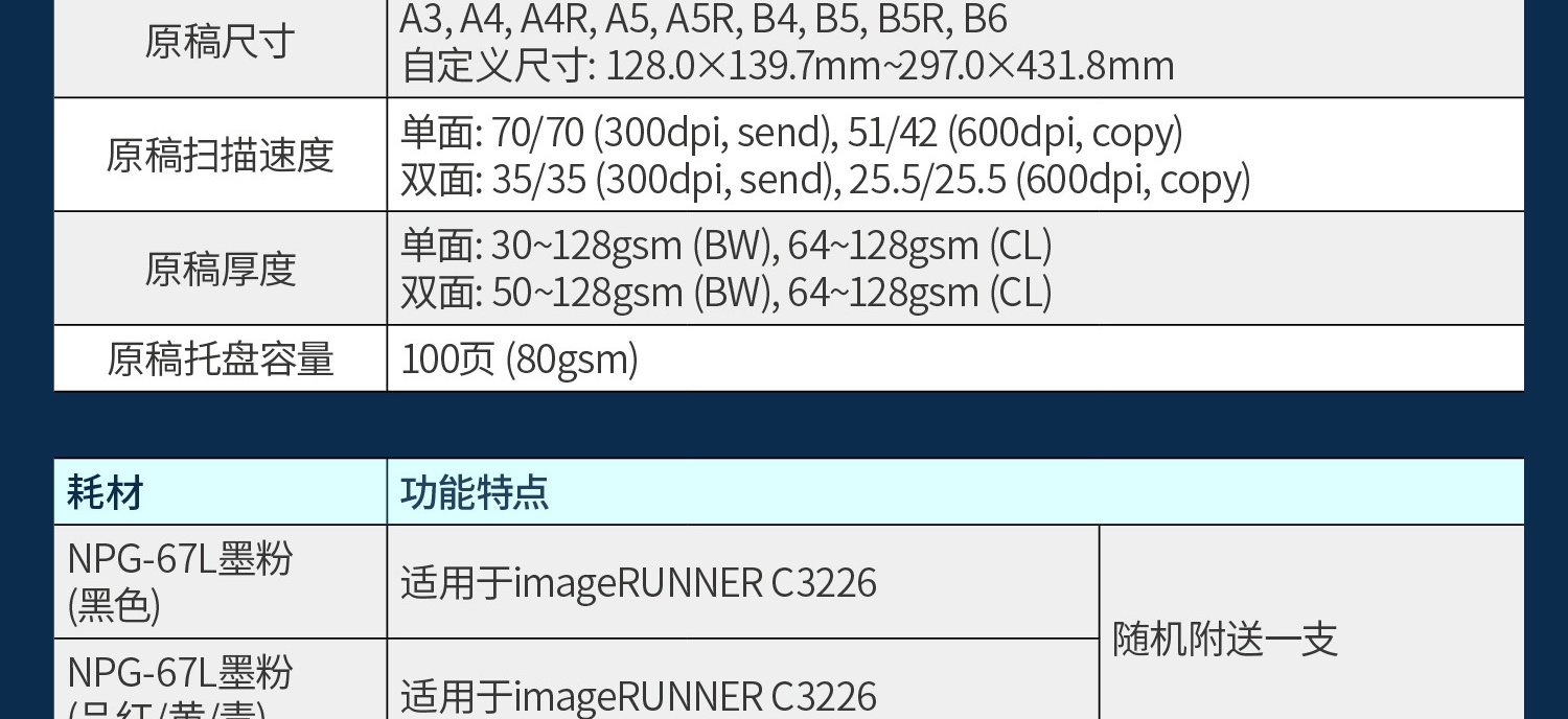 佳能(Canon)復(fù)印機(jī) 數(shù)碼復(fù)合機(jī)一體機(jī) iRC3226 四紙盒+內(nèi)置裝訂器