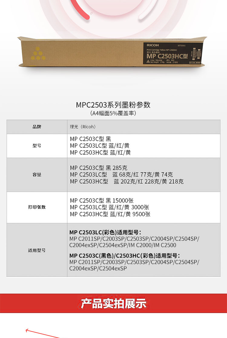 • 商品名稱:理光 MP C2503HC 黃色碳粉盒1支裝 適用MP C2003SP/C2503SP/C2011SP/C2004SP/C2504SP