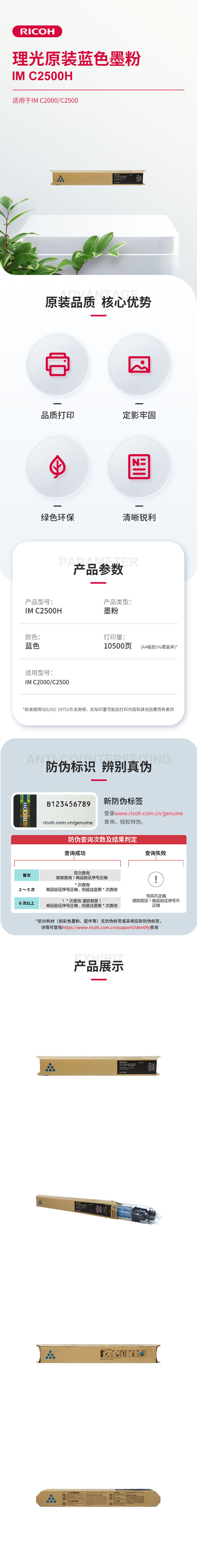 - 商品名稱(chēng):理光 IM C2500H 復(fù)合機(jī)墨粉 藍(lán)色 1支裝 適用IM C2000/C2500