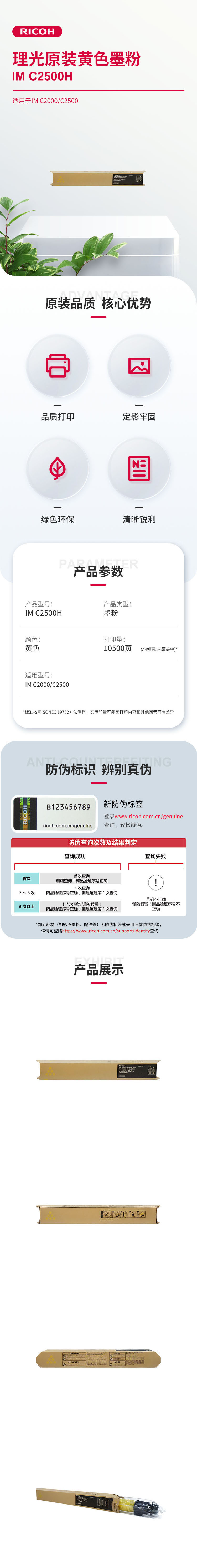 • 商品名稱:理光 IM C2500H 復(fù)合機墨粉 黃色 1支裝 適用于設(shè)備IM C2000/C2500
