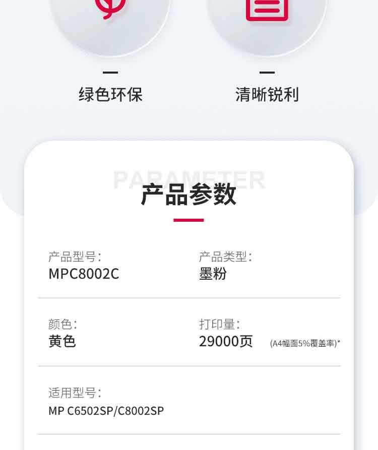 • 商品名稱:理光 MPC8002C 黃色碳粉盒1支裝 適用MP C6502SP/C8002SP
