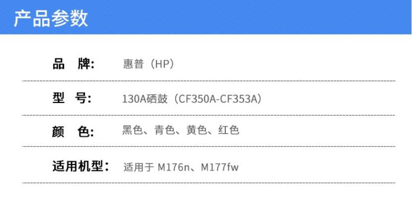 • 商品名稱:惠普(HP) CF350A 黑青黃紅四色套裝硒鼓 (適用于LaserJet M176n/ M177fw)