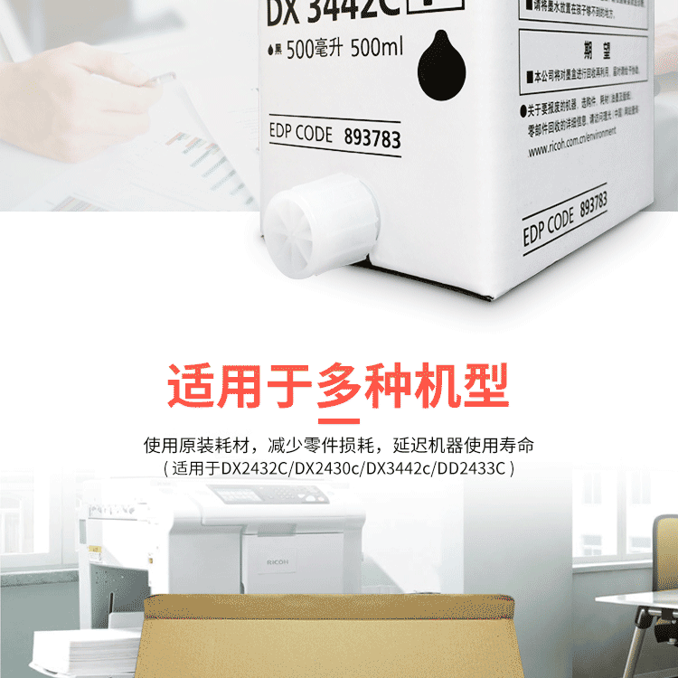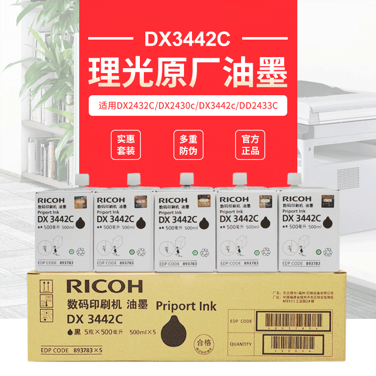 • 商品名稱:理光 DX3442C(500cc/瓶)黑油墨 適用于DX2432C/DX2430c/DX3442c/DD2433C