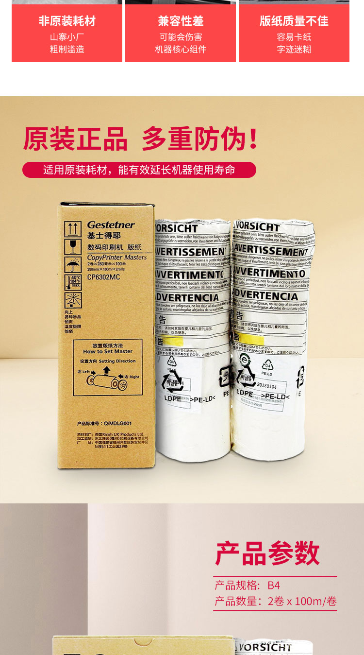 • 商品名稱:基士得耶 CP6302MC (100m/卷)版紙 適用于 CP6302C/CP6303C