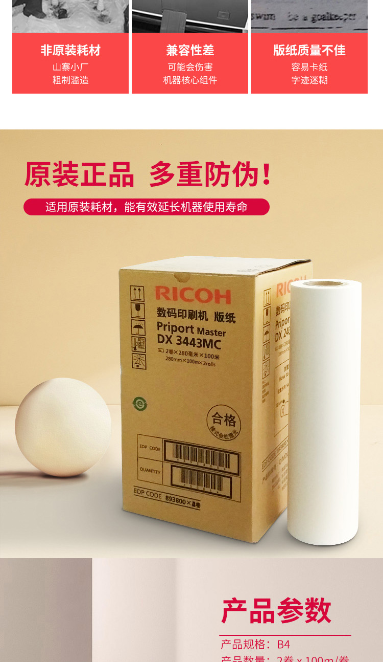 • 商品名稱:理光 DX3443MC(100m/卷) 版紙 適用于DX3443C/DD3344C