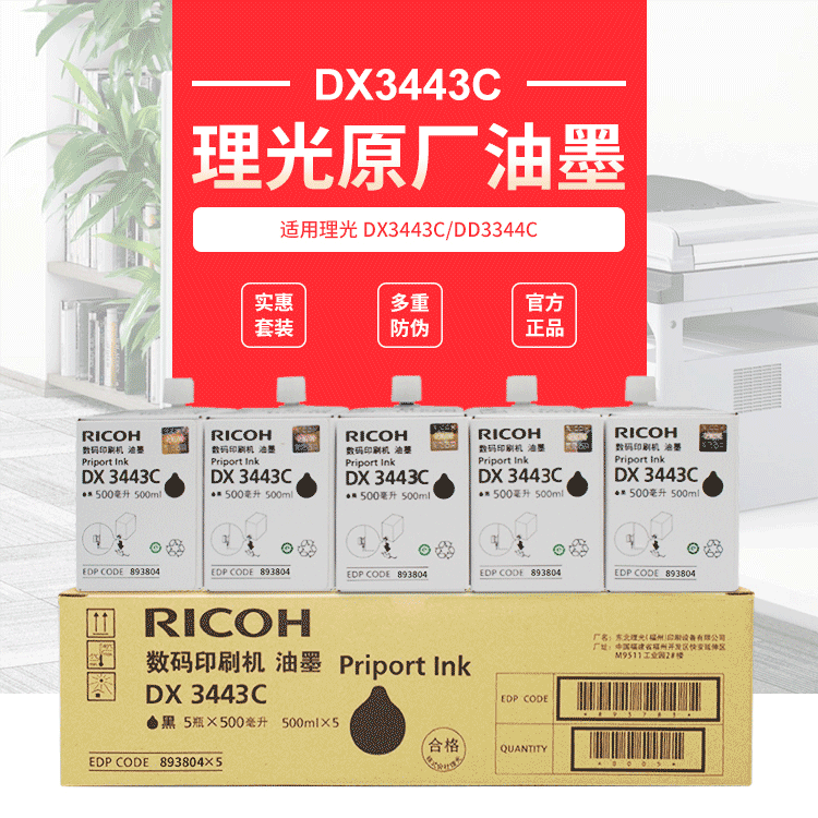• 商品名稱:理光 DX3443C(500cc/瓶)原裝黑油墨 適用于DX3443C/DD3344C