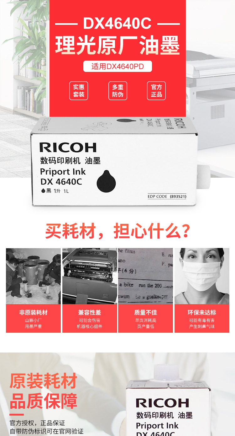 • 商品名稱:理光 DX4640C(1000cc/瓶) 黑油墨 適用于DX4640PD