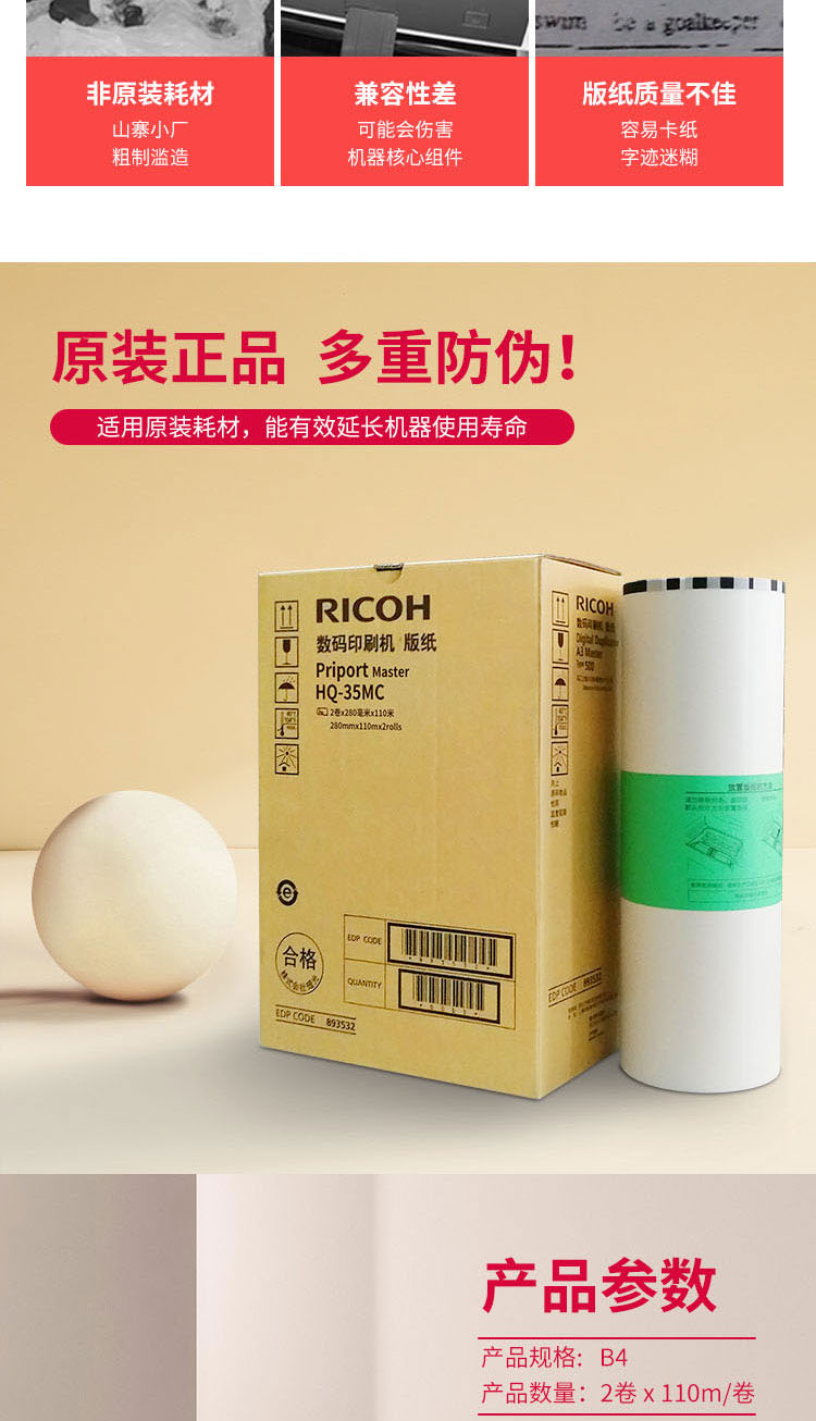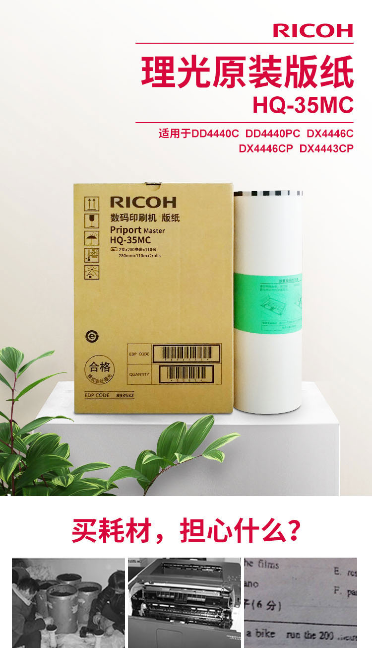 • 商品名稱:理光 HQ-35MC(110m/卷) 版紙 適用于DD4440C/DD4440PC/ DX4446C/DX4446CP/DX4443cp