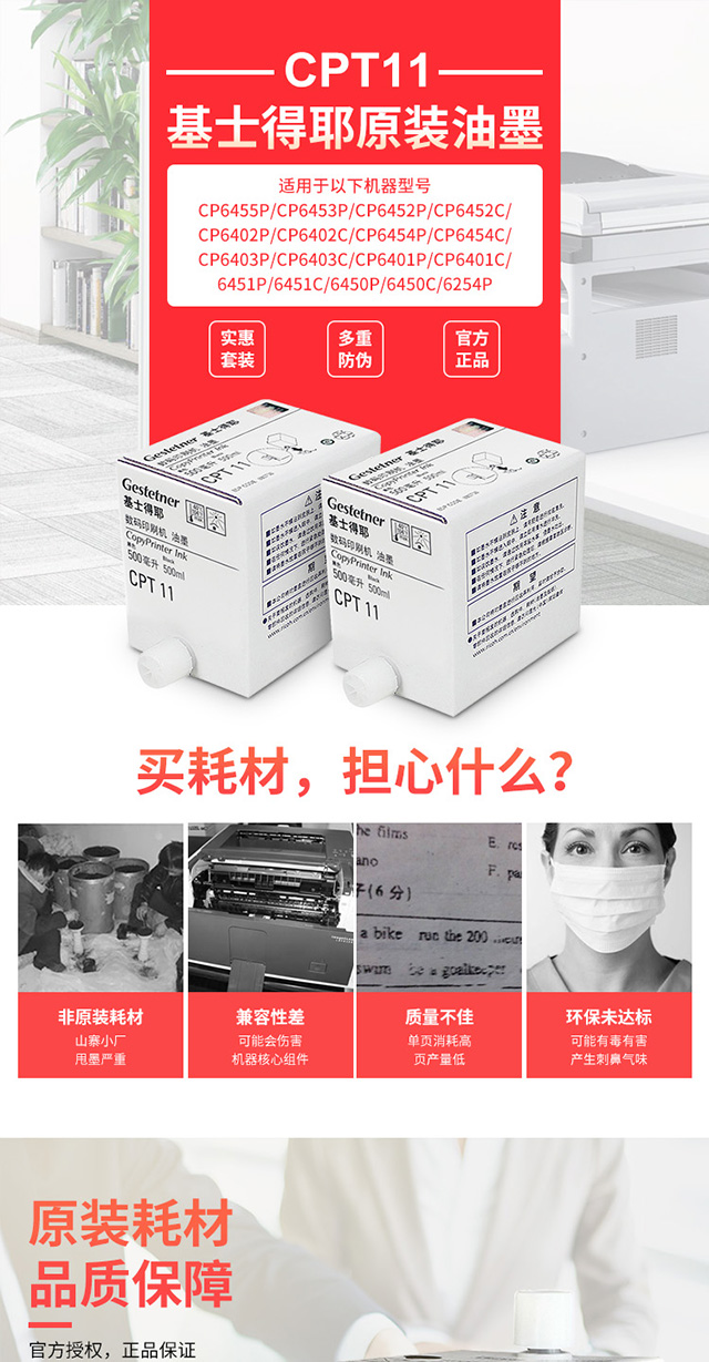 基士得耶 CPT11(500cc/瓶)黑油墨 適用于CP6455P/CP6453P/CP6452P/CP6452C/CP6402P/CP6402C