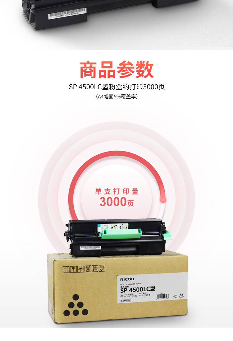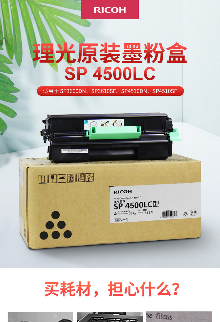 • 商品名稱:理光 SP 4500LC 黑色墨粉盒1支裝 適用于SP 3600DN/4510DN/ 3610SF/4510SF