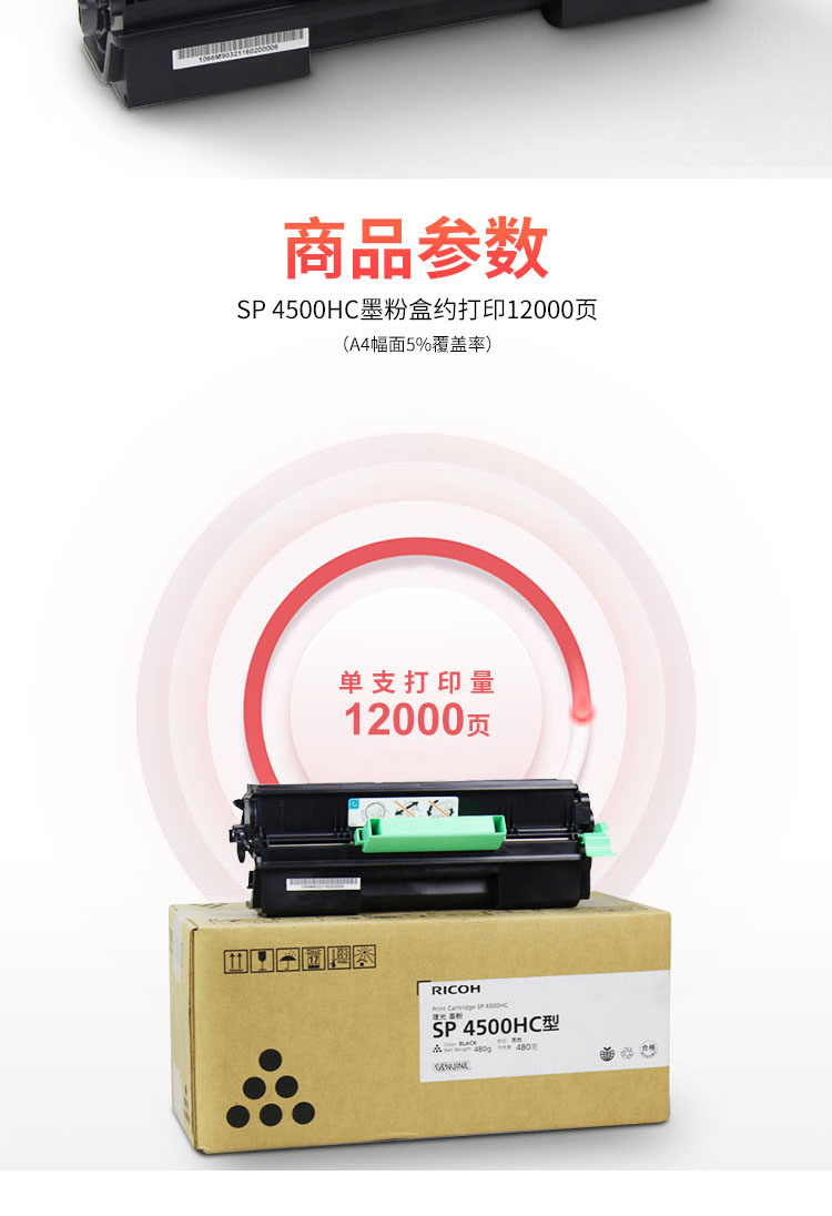 • 商品名稱:理光 SP 4500HC 黑色墨粉盒1支裝 適用于 4510DN/4510SF