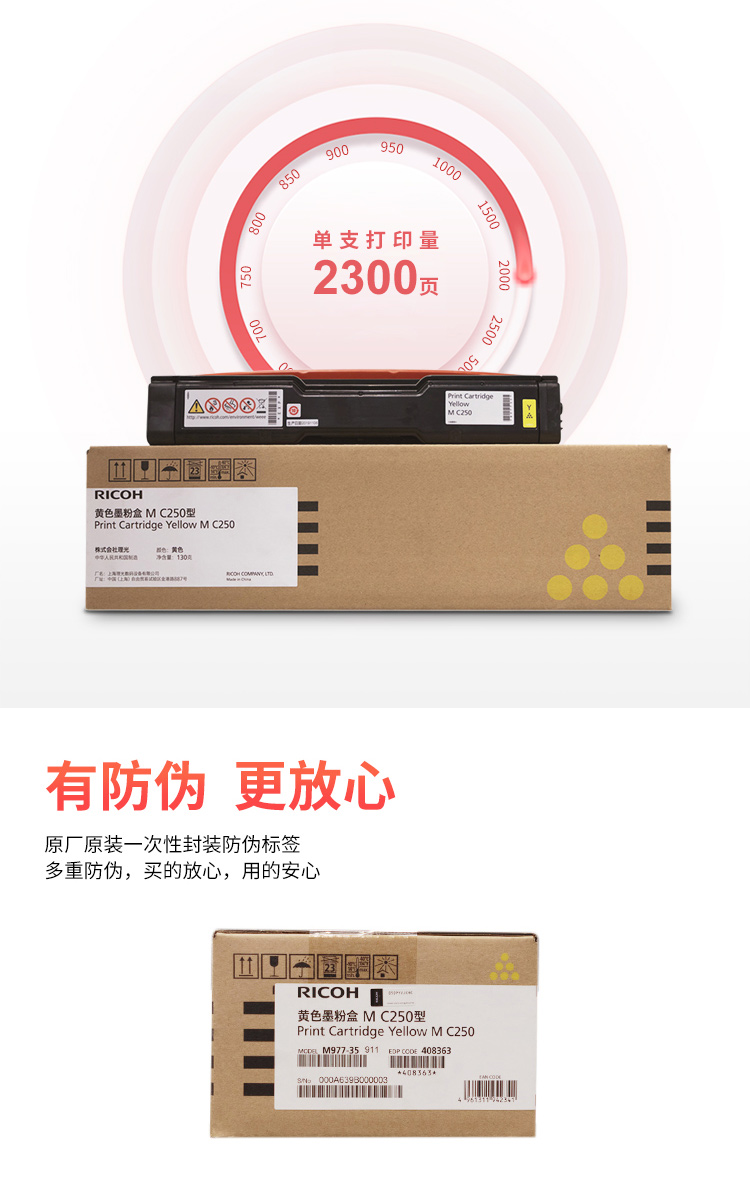 • 商品名稱:理光 M C250型 黃色墨粉盒 適用于P C300W/M C250FWB