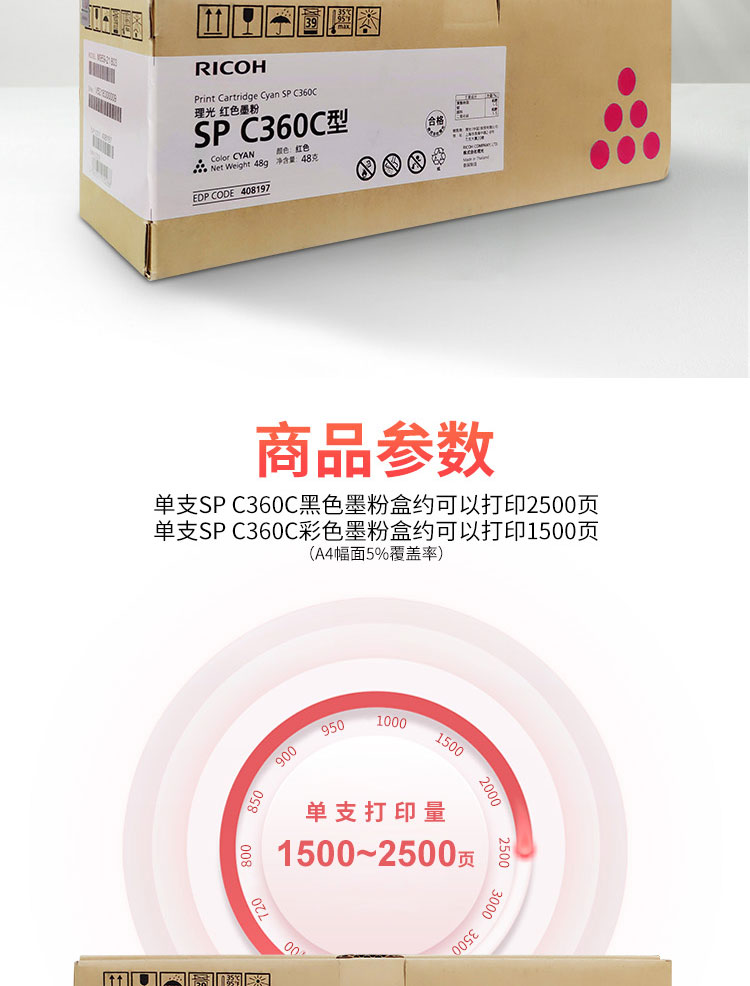 • 商品名稱:理光 SP C360C 青色墨粉盒1支裝 適用于SP C360DNw/C360SFNw