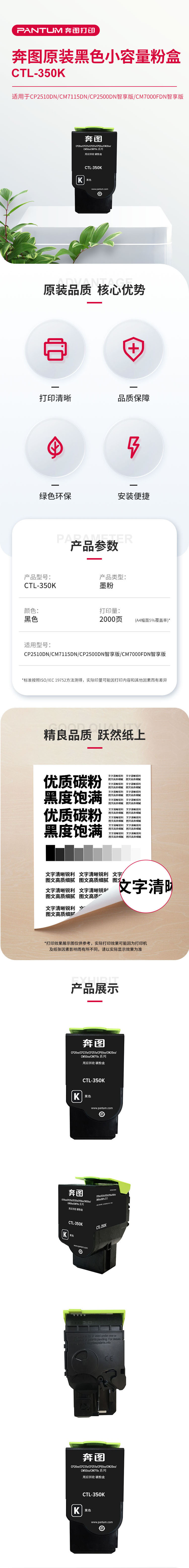 • 商品名稱:奔圖(PANTUM)CTL-350K 小容量黑色粉盒