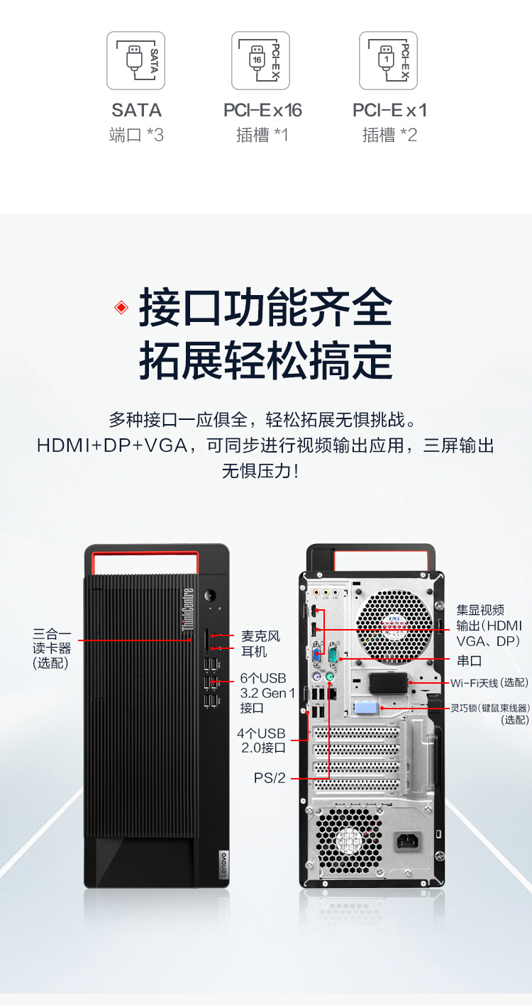 聯(lián)想 ThinkCentre M737t-D215 臺式電腦 i5-10500/8G/1T/無光驅(qū)/OKR 21.5英寸