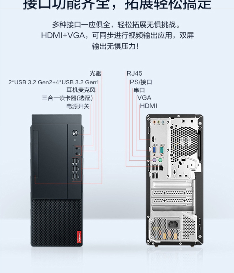 聯(lián)想 啟天M437 臺式電腦 I5-10500 8G 1T+256G DVDRW 23.8英寸顯示器 三年保修