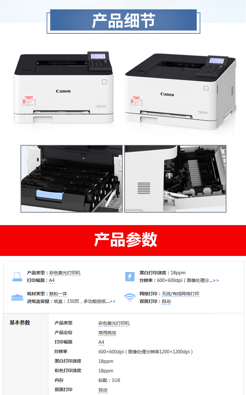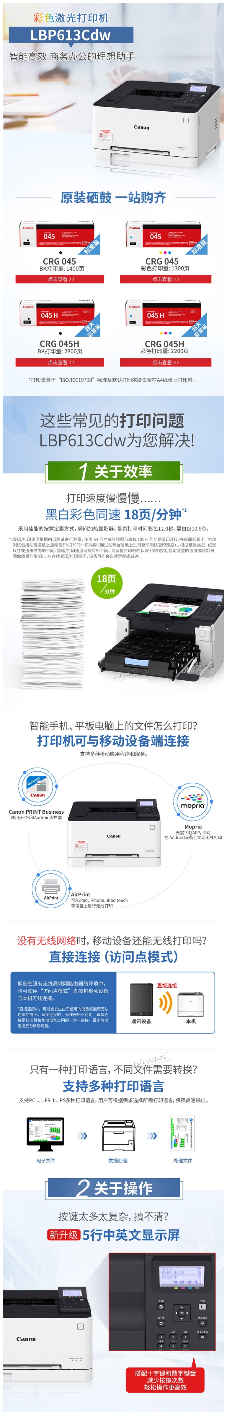 • 商品名稱:佳能(Canon)LBP613cdw彩色激光打印機