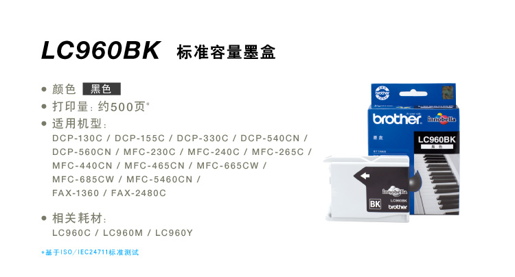 • 商品名稱:兄弟(brother)LC-960BK 黑色墨盒 適用于兄弟240/3360/665/2480