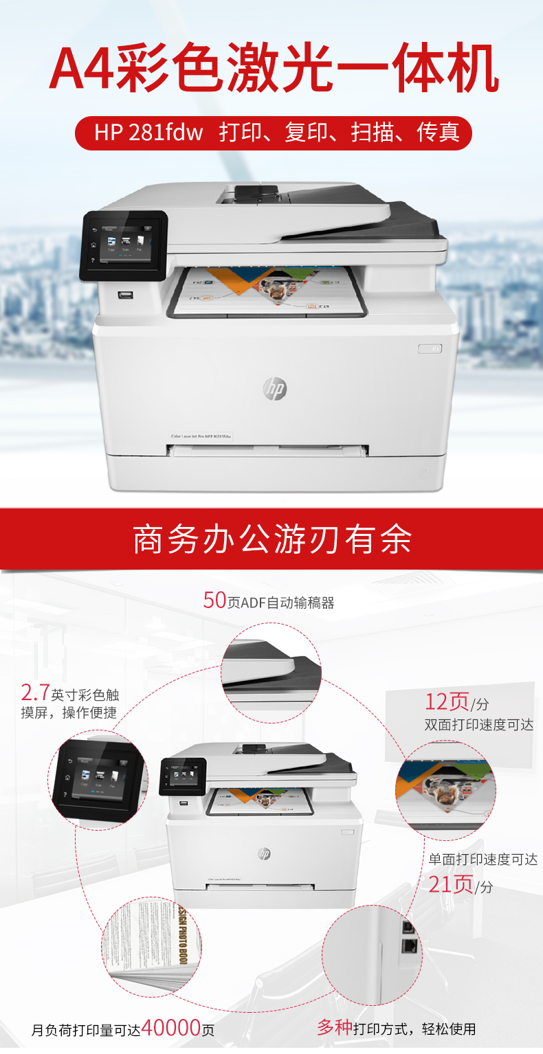 - 商品名稱:惠普(HP)Color LaserJet Pro MFP M281fdw 彩色多功能一體機(jī)