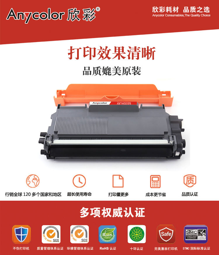 Anycolor欣彩AR-TN2225黑色硒鼓/墨粉盒適用兄弟TN-2215/2225,Brother HL-2220