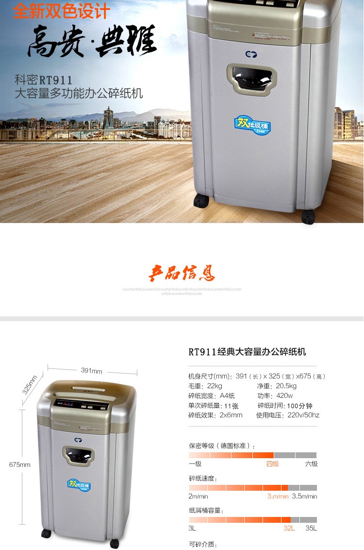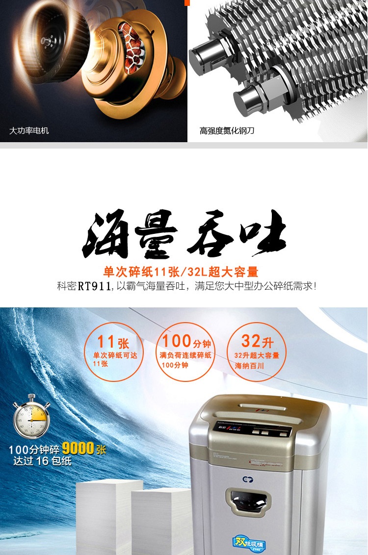• 商品名稱:科密(comet)RT911 多功能大型辦公保密碎紙機 單次碎紙11張 碎光盤卡片