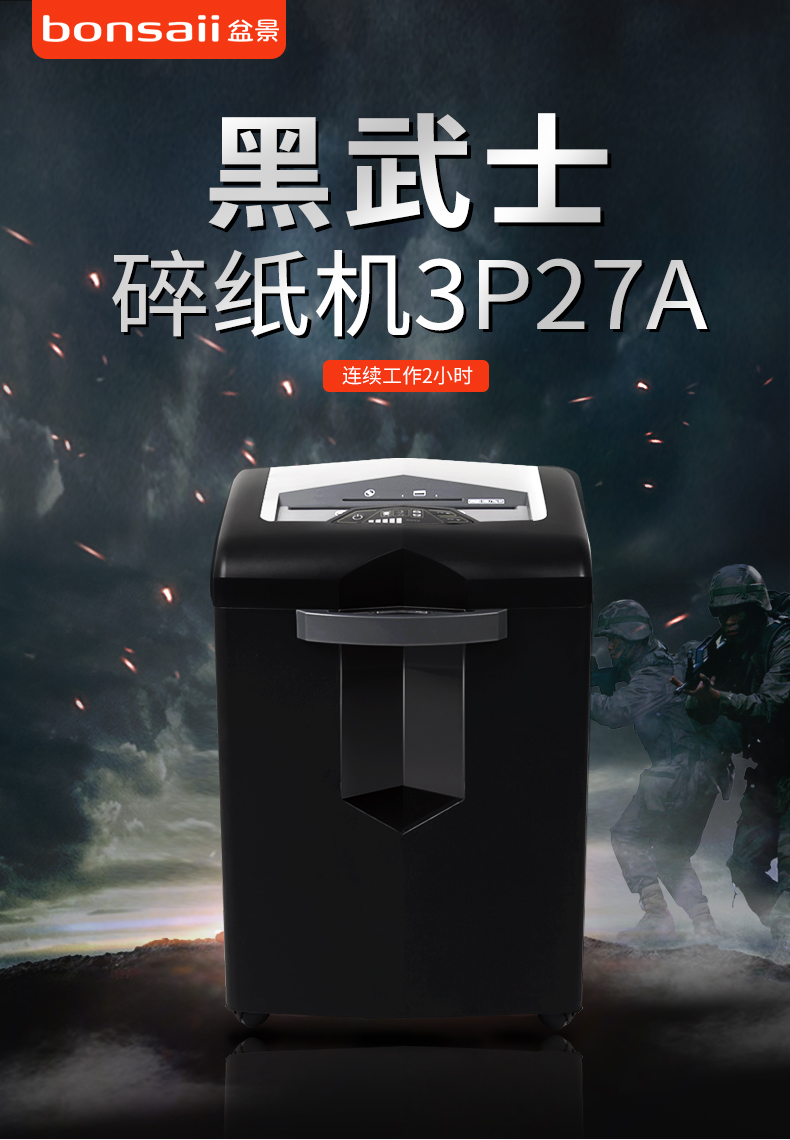 • 商品名稱:盆景 (bonsaii) 3P27A碎紙機(jī) 黑武士系列風(fēng)冷式碎紙機(jī) 連續(xù)碎紙時(shí)間2小時(shí) 可碎信用卡、CD、訂書針、回形針、大頭針