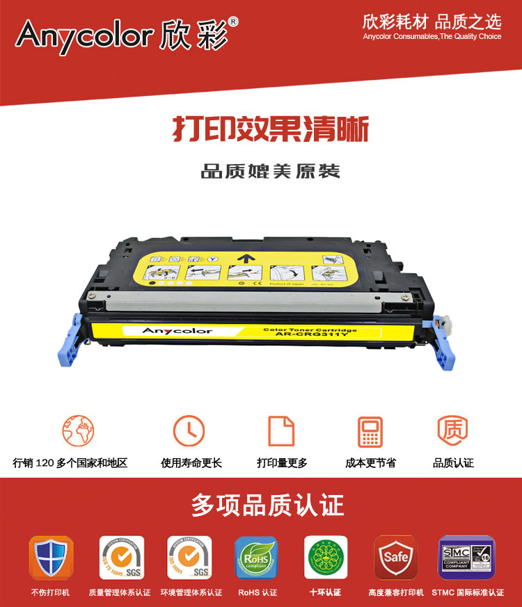 欣彩Anycolor AR-CRG311Y彩色硒鼓/墨粉盒適用佳能CRG 311Y,CANON LBP 5300