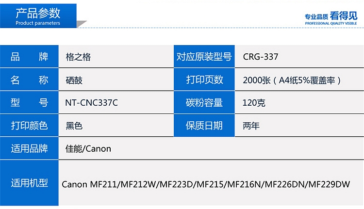 格之格NT-CC337C硒鼓 適用于Canon Image Class MF229dw/MF216n/MF222dw/ Canon ImageClassMF217w/MF211/MF212w/MF227dw/MF226dn/MF224dw (CLASS MF232w/MF233n/MF236n/MF243d/MF246dn/MF249dw無(wú)機(jī)器未驗(yàn)證)337 337C