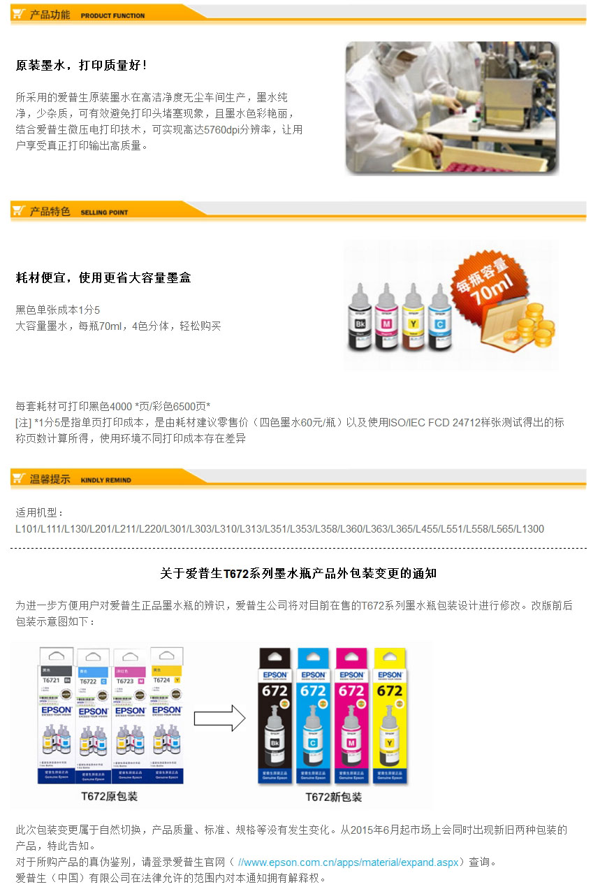 - 商品名稱:愛普生(EPSON)T6722 青色墨水瓶(適用L220/L310/L313/L211/L360/L380/L455L485/L565/L605/L1655)6722