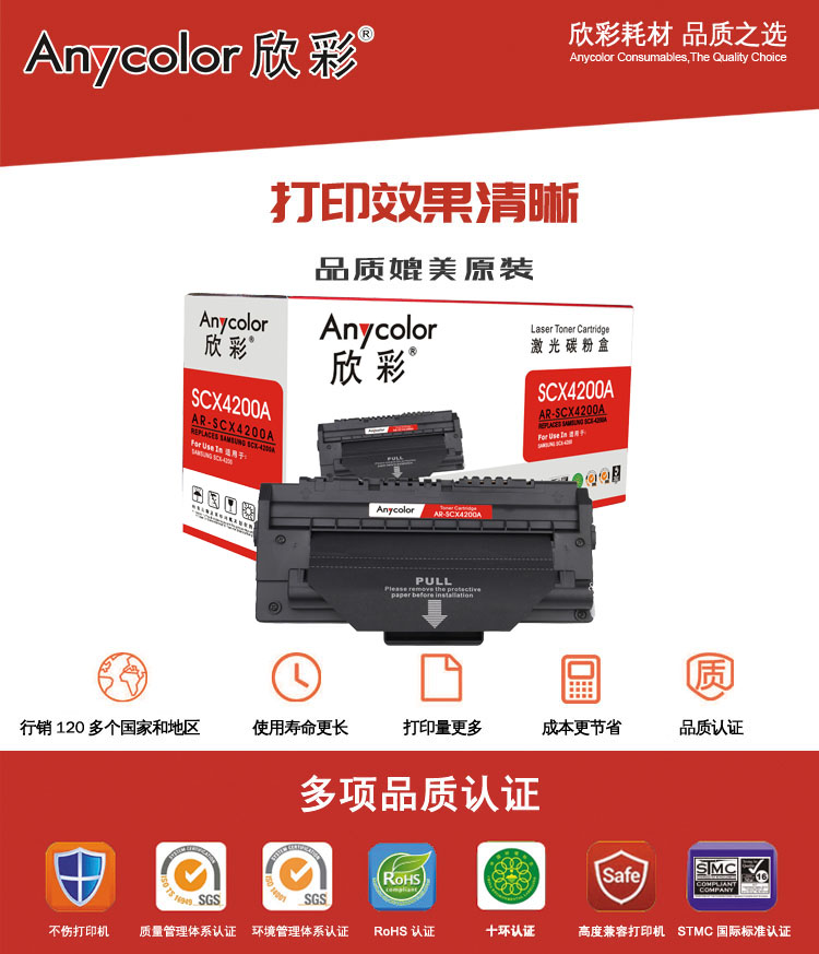 欣彩Anycolor AR-SCX4200A 黑色硒鼓/墨粉盒適用三星Samsung SCX-4200