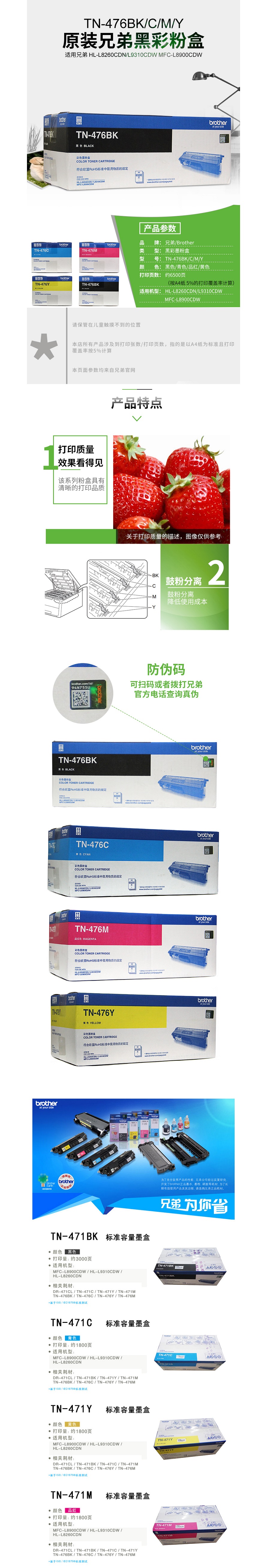 • 商品名稱:兄弟(brother)TN-476BK粉盒 適用于兄弟8260CDN/9310CDW/8900CDW