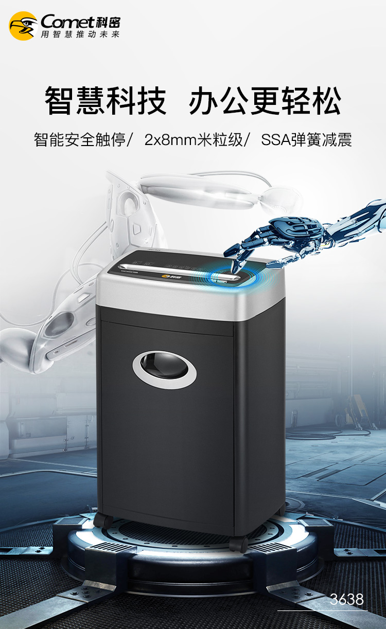 科密(comet)5級保密辦公商用碎紙機(jī)(單次8張 持續(xù)30分鐘 20L 可碎卡)3638
