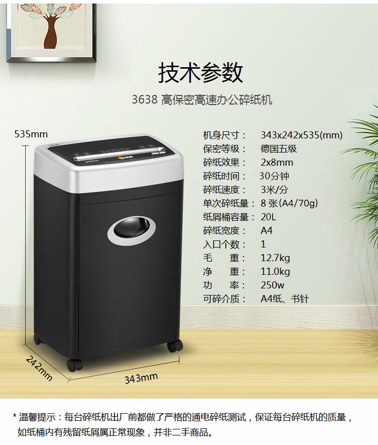 • 商品名稱:科密(comet)5級保密辦公商用碎紙機(jī)(單次8張 持續(xù)30分鐘 20L 可碎卡)3638