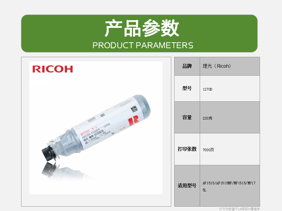 • 商品名稱:理光 墨粉 黑色MP1270D 適用于A1515 / A1515MF / MP175L